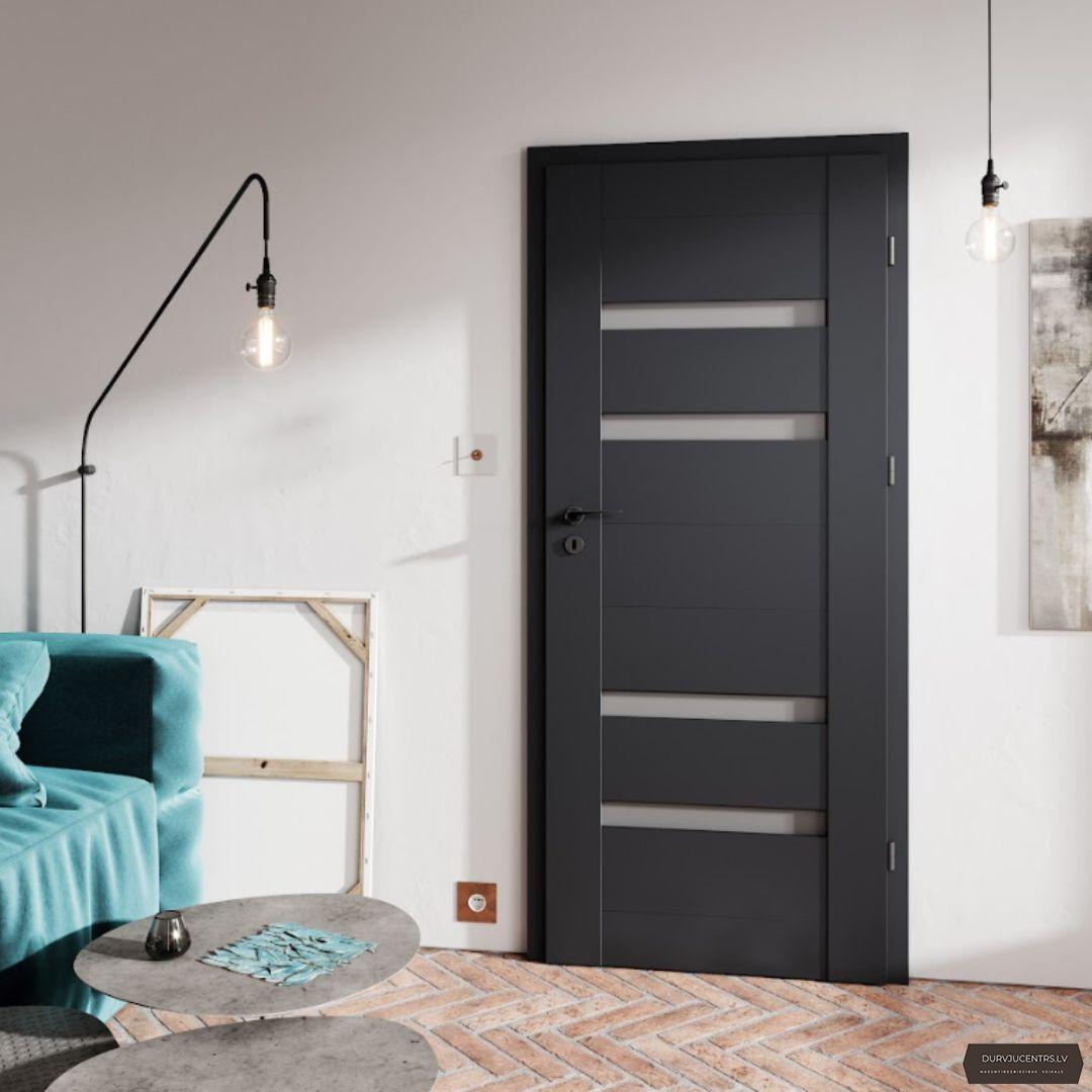 Cenā iekļauta standarta komplektācija, durvju vērtne, MDF durvju kārba, 2014 tipa slēdzene un universālās eņģes.